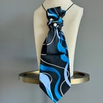 Make a statement that flows with style. This UpTie features bold swirls of deep ocean blue and soft sky tones against a sleek black backdrop, creating a fluid, modern design. The hand-tied knot is adorned with lustrous pearl accents, adding a touch of sophistication and grace. Perfect for evenings out, gallery strolls, or anytime you want your outfit to make waves.