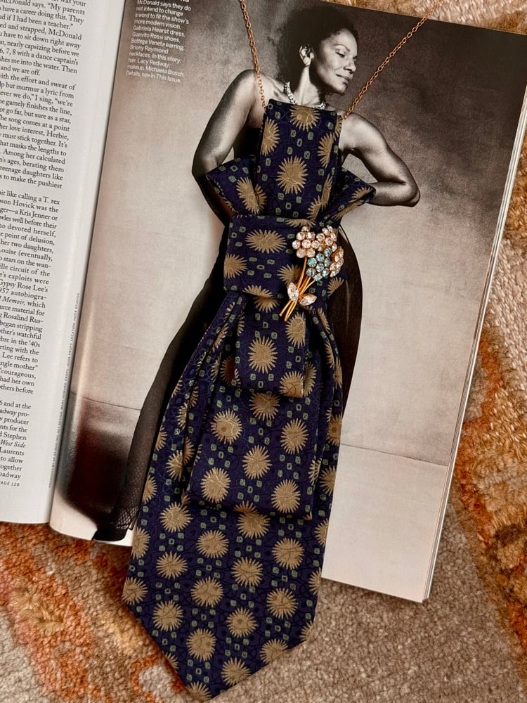 Meadow Moonlight is a romantic, vintage-inspired UpTie made from a silky navy tie sprinkled with soft cream starburst florals and tiny geometric accents. The pattern feels like wildflowers glowing under moonlight — delicate, warm, and quietly magical.