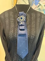 Style It With: • A crisp white blouse or a silky black turtleneck for a timeless, high-contrast look. • Pair with dark denim or a sleek pencil skirt for modern sophistication. • Accessorize with silver or sapphire earrings — or skip jewelry altogether and let the UpTie shine as the centerpiece. • For evening wear, add a navy blazer or velvet jacket to play up the luxe, celestial tones.