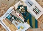This UpTie is an earthy stunner with gemstone energy and vintage sophistication. The base tie features rich diagonal stripes in deep teal, olive green, goldenrod, slate, and rust — an autumnal palette that feels grounded and luxurious. It’s folded into structured, elegant layers and topped with a dazzling floral-shaped brooch. The embellishment bursts with oversized faceted crystals, creamy yellow stones, and a textured gold center, radiating sparkle like a blooming jeweled sunflower. Suspended from a gold mesh chain, this piece is pure statement — with grounded glam and celestial shine.