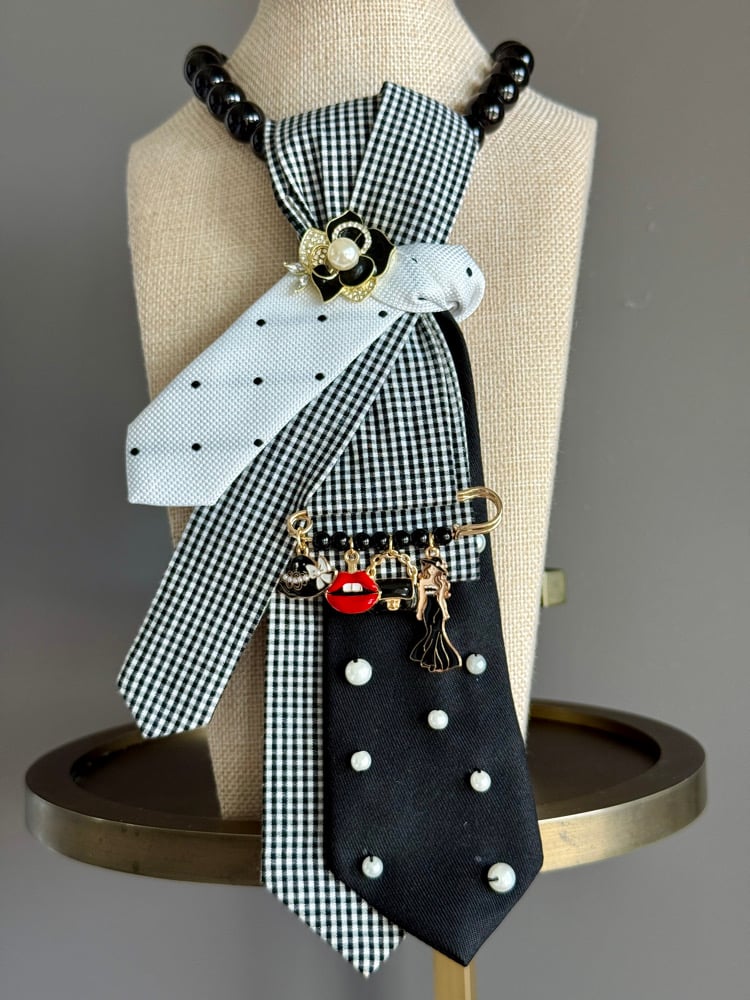 This one-of-a-kind UpTie blends classic black-and-white gingham with soft polka dots and sleek black accents, creating a perfectly balanced mix of timeless style and modern edge.