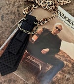 This sultry black-on-black jacquard UpTie features a subtle tone-on-tone check pattern and is all about texture and confidence. The drama ramps up with a bold gold chain detail encircling the knot like a statement halo, while a silky leopard-print scarf ties it all together—literally—bringing major runway energy. Sophisticated with a sassy twist, this piece is made for the woman who walks like she owns the concrete jungle.