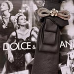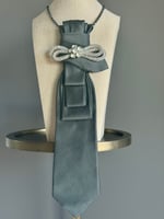 This sleek charcoal-and-black UpTie stuns with subtle texture and a refined silhouette. Anchored by a crystal-encrusted infinity bow brooch, it strikes the perfect balance between classic sophistication and red carpet dazzle. Finished with a black beaded choker, it’s the ideal statement for an evening out—or any time you’re feeling extra fabulous.